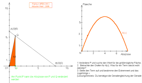 Ein Punkt Q bewegt sich geradlinig von A(0|6) nach B(8|0). Dabei ändert das Dreieck